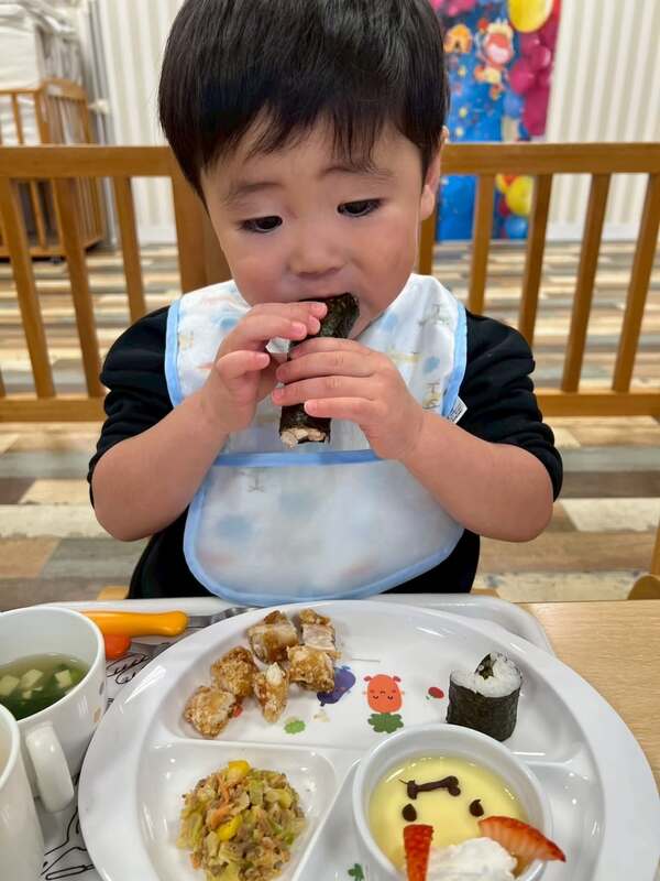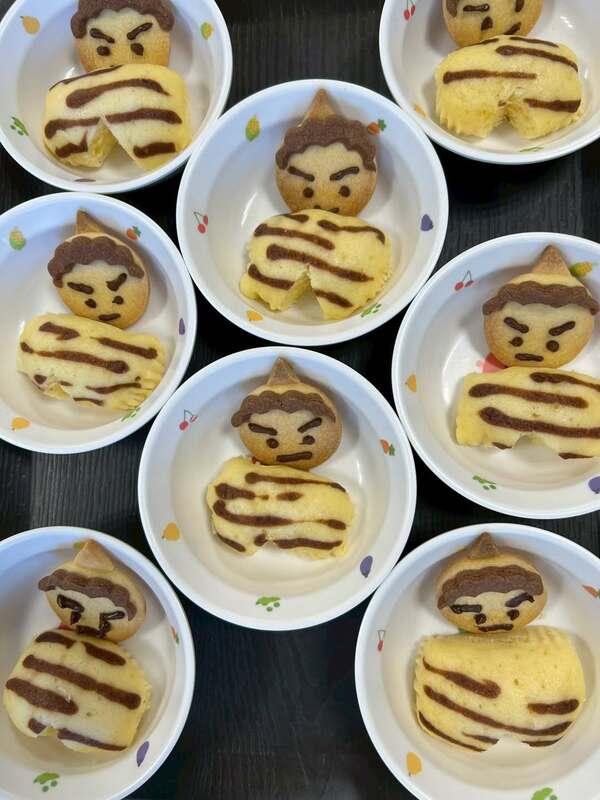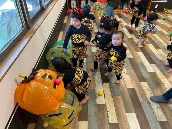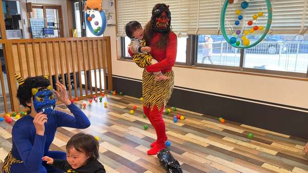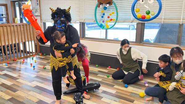 衣装を身につけ、ボールを豆の代わりに投げて「おにはそと!ふくはうち!!」 そして、今年も鬼の登場!!! 1年間元気に過ごせるとを願って、、、 みんな鬼退治よく頑張りました😂👏 お昼ご飯はみんな夢中で食べ進めていました💕 節分の日おやつは「鬼さんクッキー」と「鬼のパンツ風むしパン」でした😍!