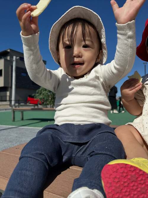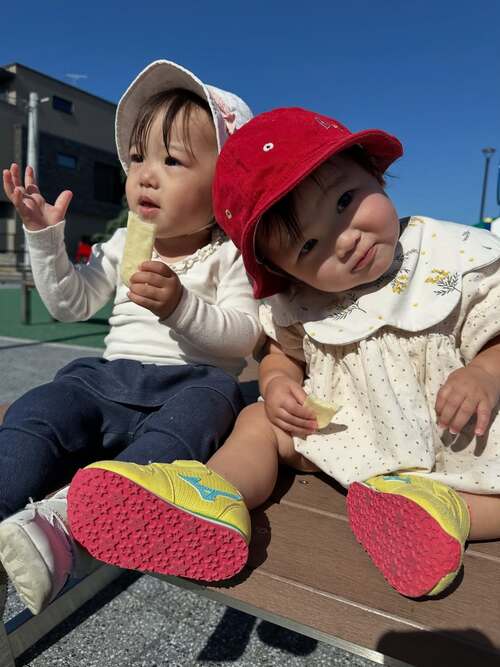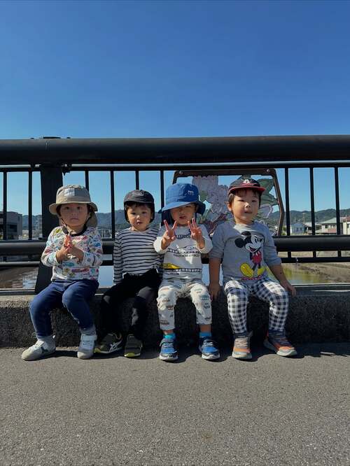 本日は天気も良く、元気にお散歩へ😄 朝おやつの時間に睡眠をとっていた0歳児さんは公園でおやつタイム😋💕 公園で遊んだり、橋の上でお魚を見たりのんびりした時間を過ごしました☺️✨